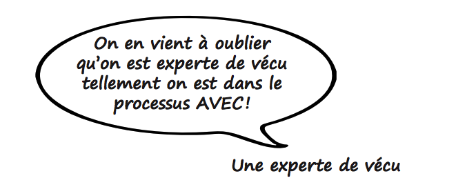 Il est crucial de placer au cœur de la recherche les experts de vécu afin qu’elles soient partie prenante du processus. Pas seulement comme spectatrice, mais comme actrice à part entière.